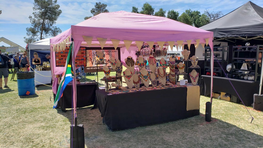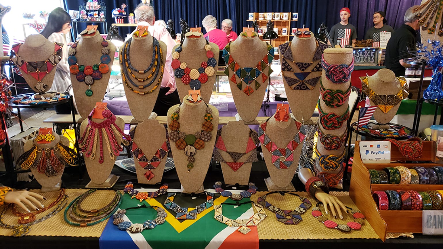 " Every Necklace, or Accessory I offer is Handcrafted from imported South African Fabric. They are all one of a kind.  Because of that, prints on each individual fabric may vary slightly, or a fabric may have been discontinued.  All efforts are taken to insure that you are getting the color scheme in the picture of the product you may be ordering."