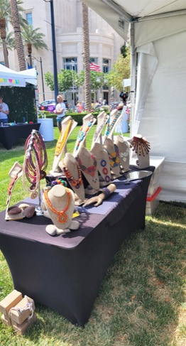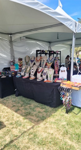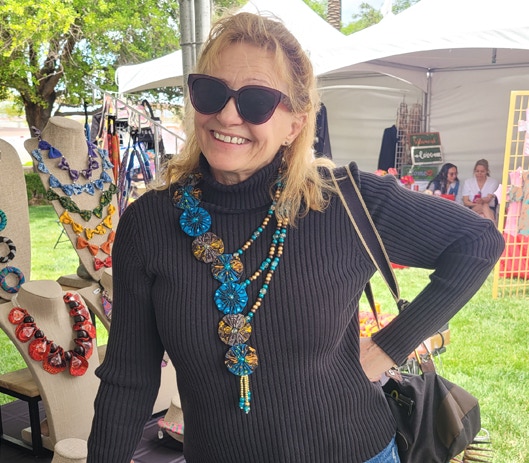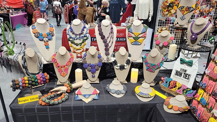 " Every Necklace, or Accessory I offer is Handcrafted from imported South African Fabric. They are all one of a kind.  Because of that, prints on each individual fabric may vary slightly, or a fabric may have been discontinued.  All efforts are taken to insure that you are getting the color scheme in the picture of the product you may be ordering."