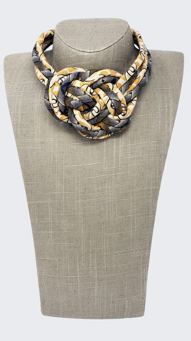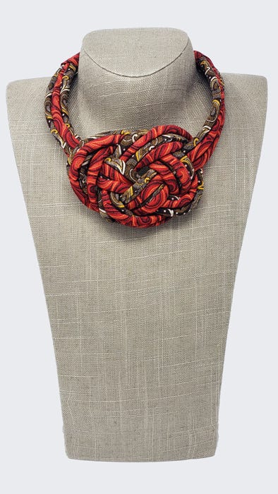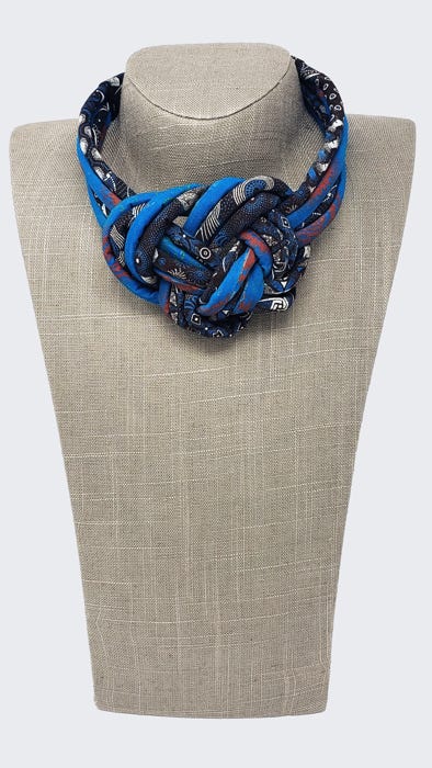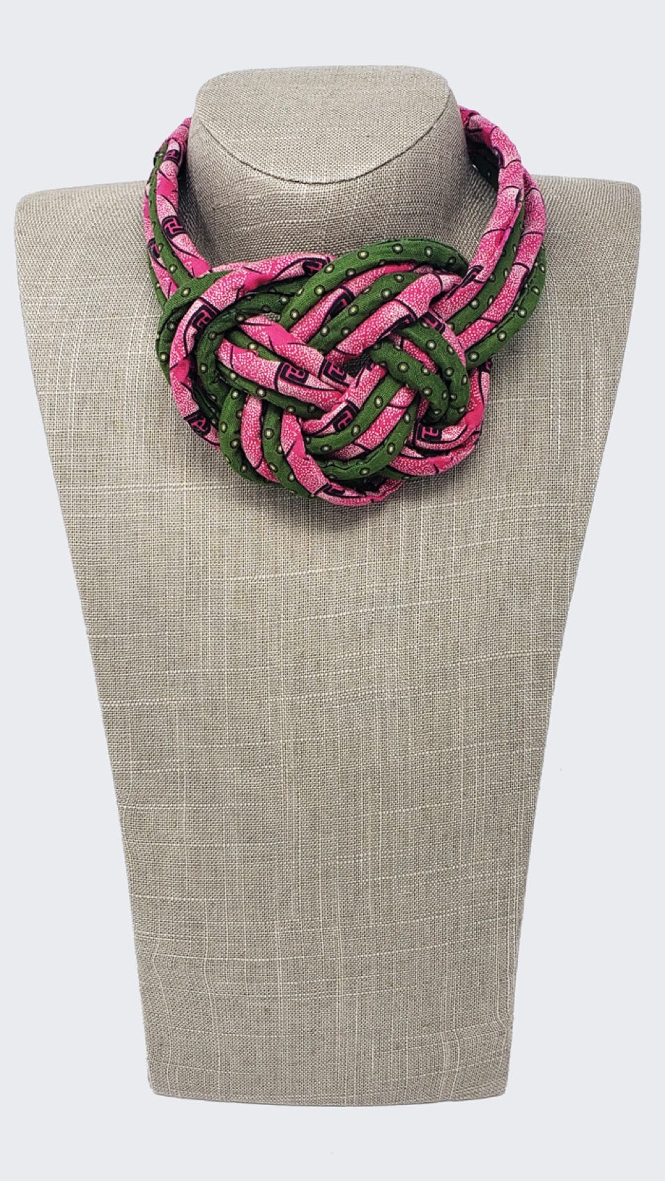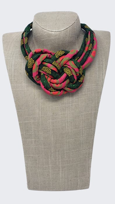 " Every Necklace, or Accessory I offer is Handcrafted from imported South African Fabric. They are all one of a kind. Because of that, prints on each individual fabric may vary slightly, or a fabric may have been discontinued. All efforts are taken to insure that you are getting the color scheme in the picture of the product you may be ordering."