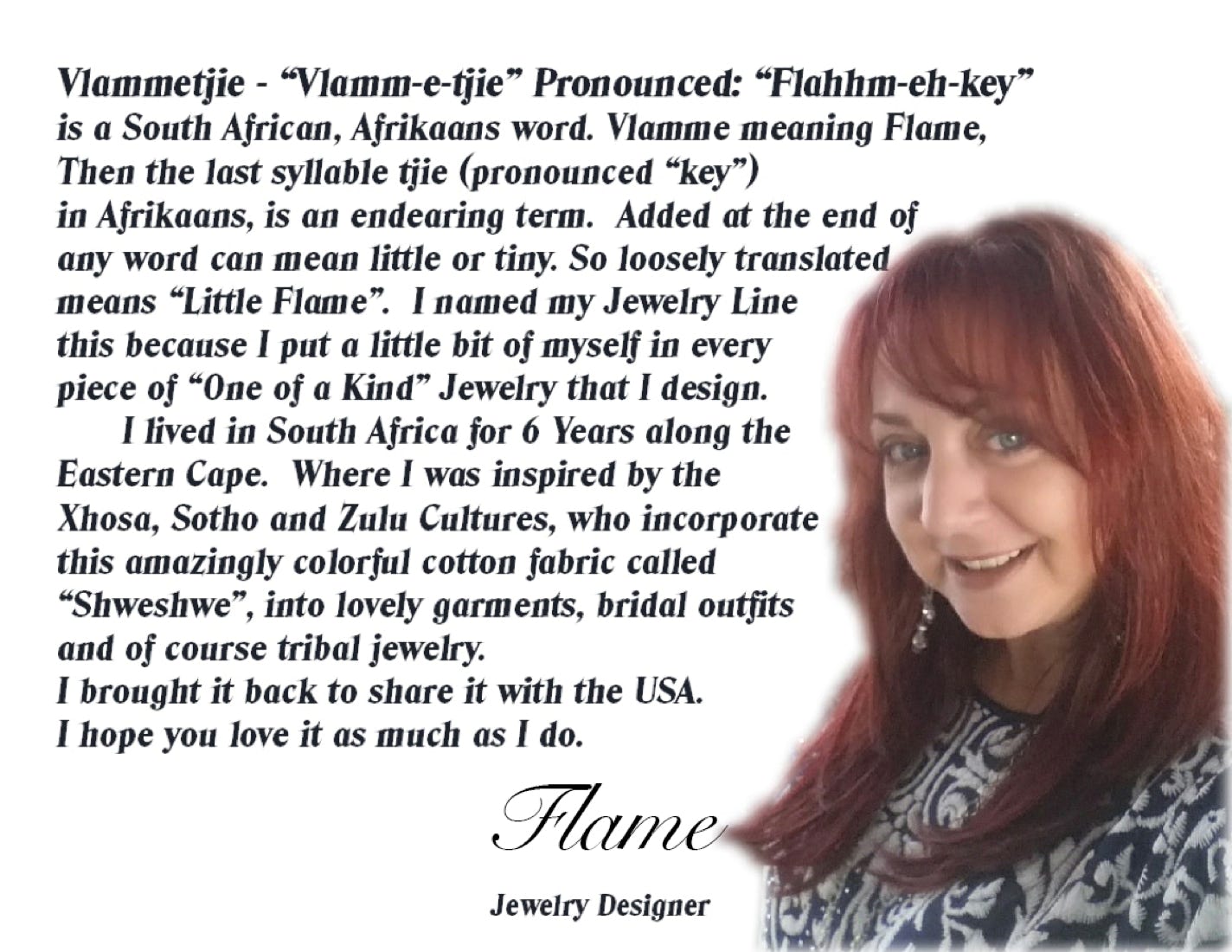 Tribal Inspired Jewelry Designs Handcrafted by FLAME Made with only Authentic South African Shweshwe Fabric